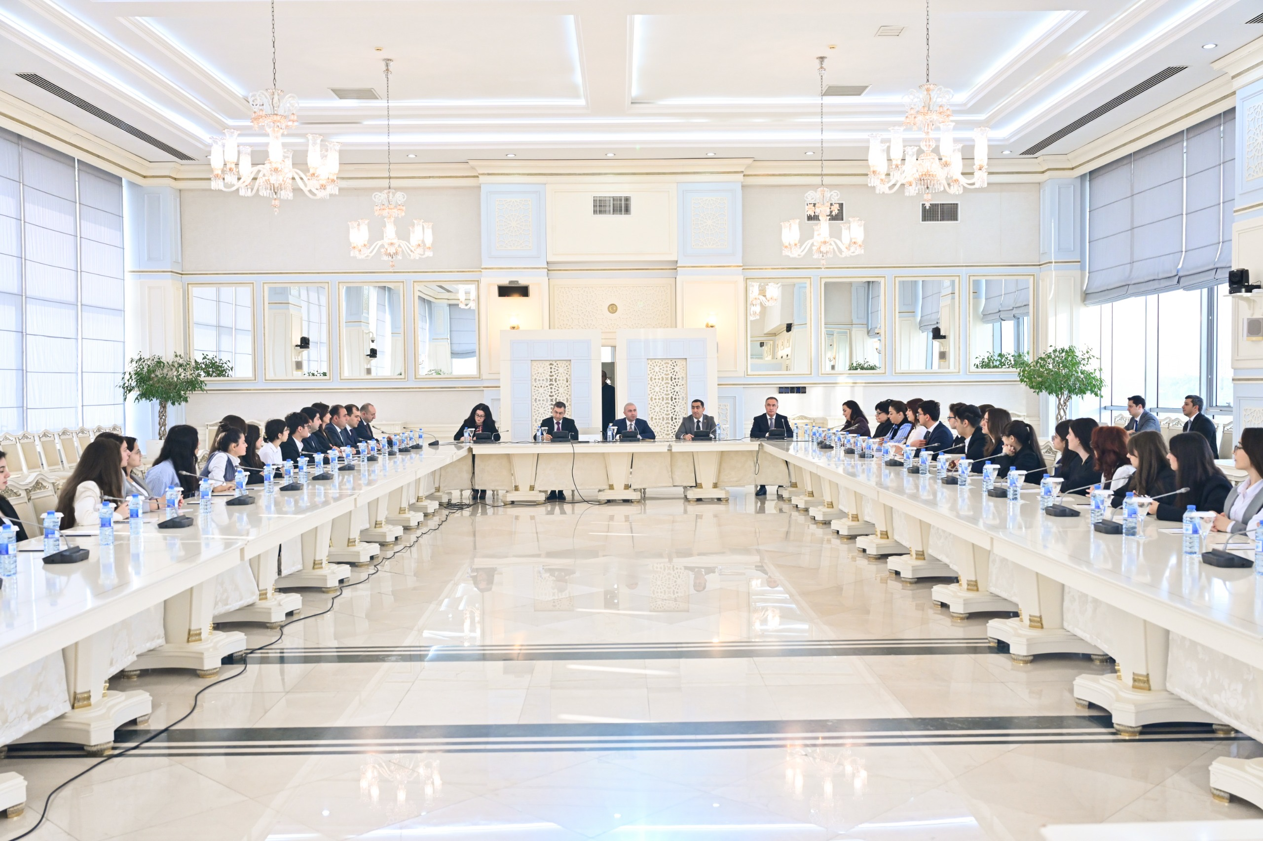 Руководитель Аппарата ММ Фарид Гаджиев встретился со студентами, поприветствовал их от имени председателя ММ Сахибы Гафаровой и проинформировал о мероприятиях, проведенных в рамках Года Конституции и суверенитета. Он выступил с докладом на тему «Общенациональный лидер Гейдар Алиев – автор Конституции независимого Азербайджана», в котором рассказал об исторических этапах конституционного развития, роли великого лидера в укреплении традиций государственности и процессе подготовки Конституции 1995 года.