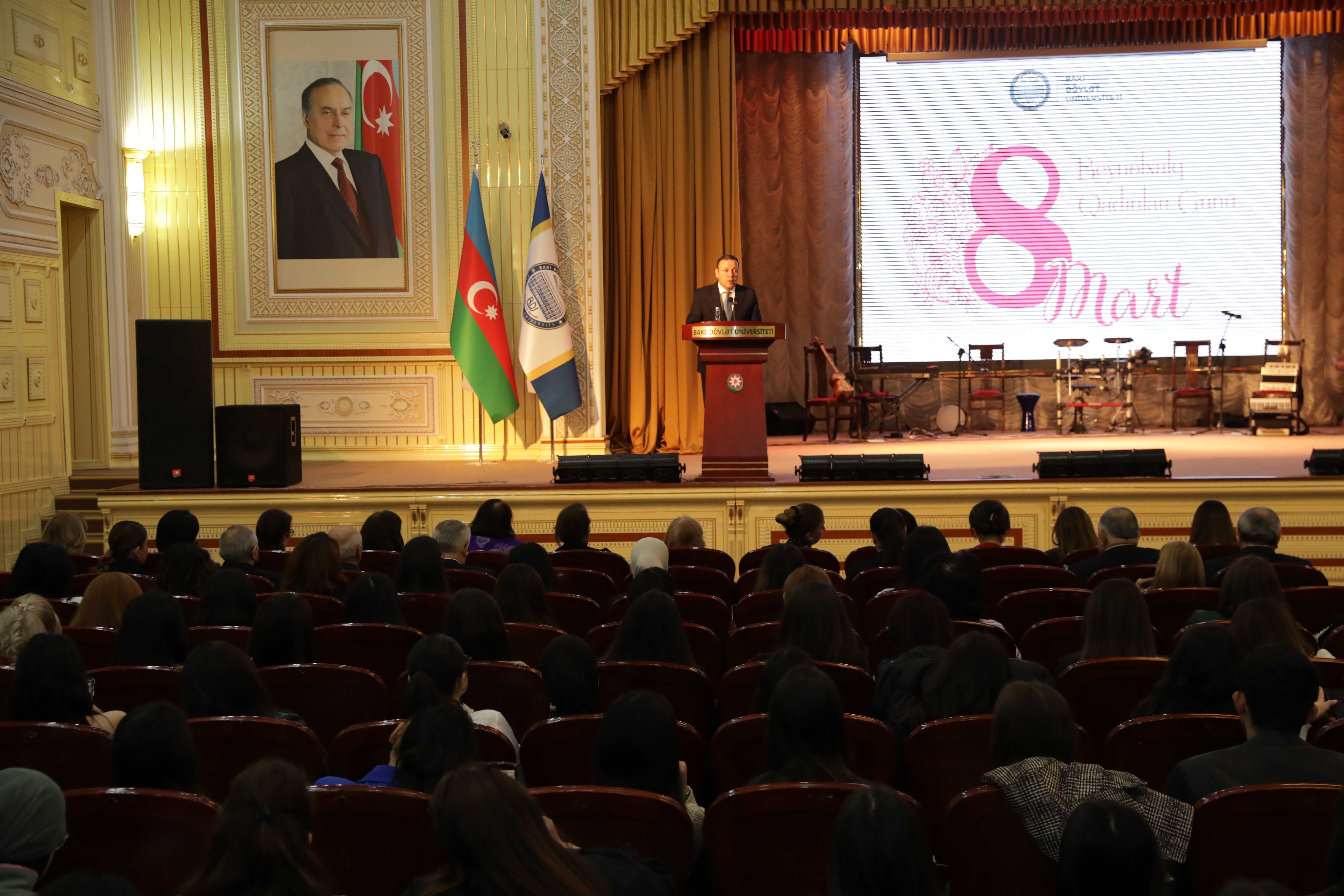 Проректор подчеркнул, что в настоящее время 68% студентов и до 62% сотрудников БГУ – женщины. Научно-педагогический потенциал женщин-сотрудниц играет важную роль в том, что вуз является авангардом азербайджанского образования и науки.