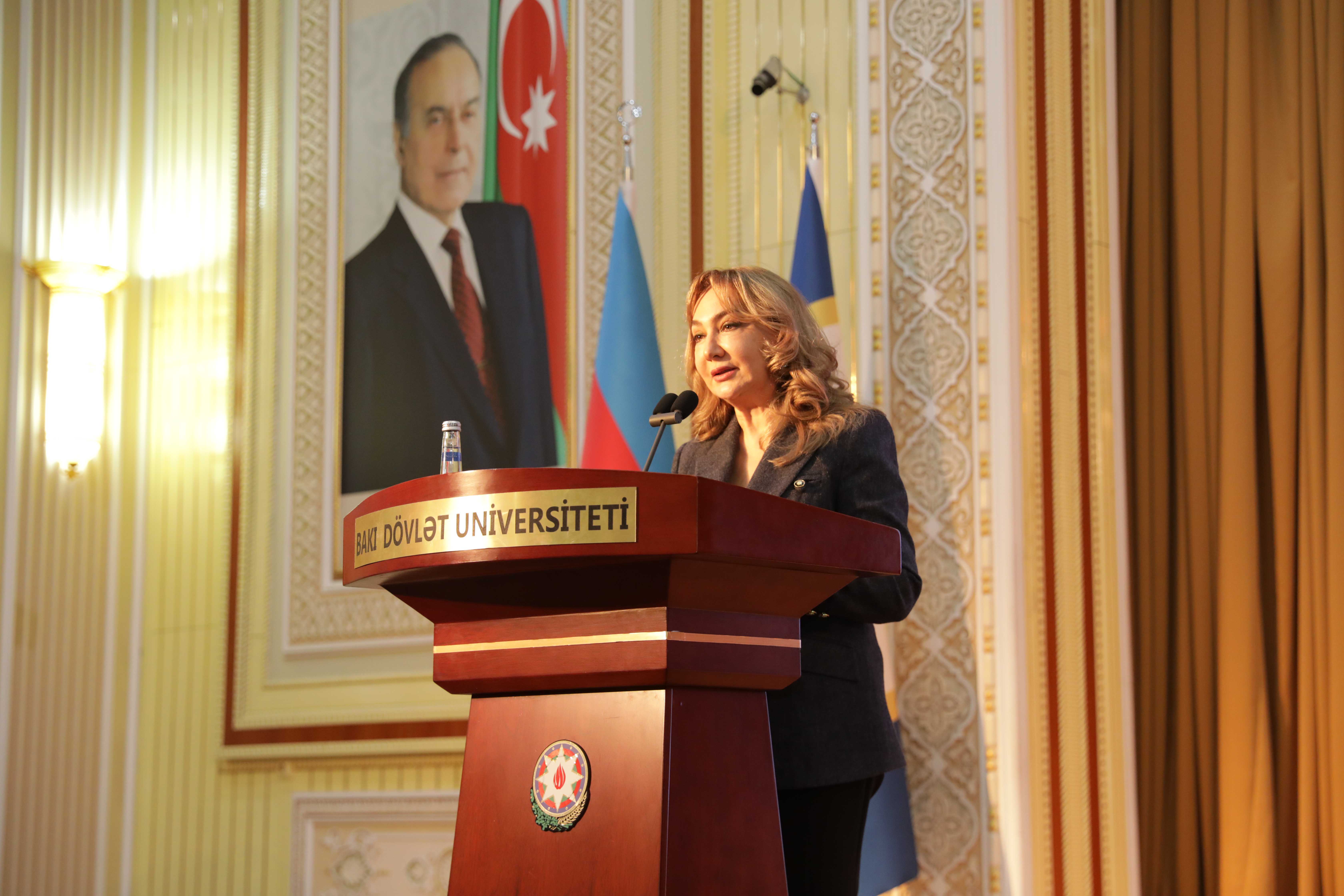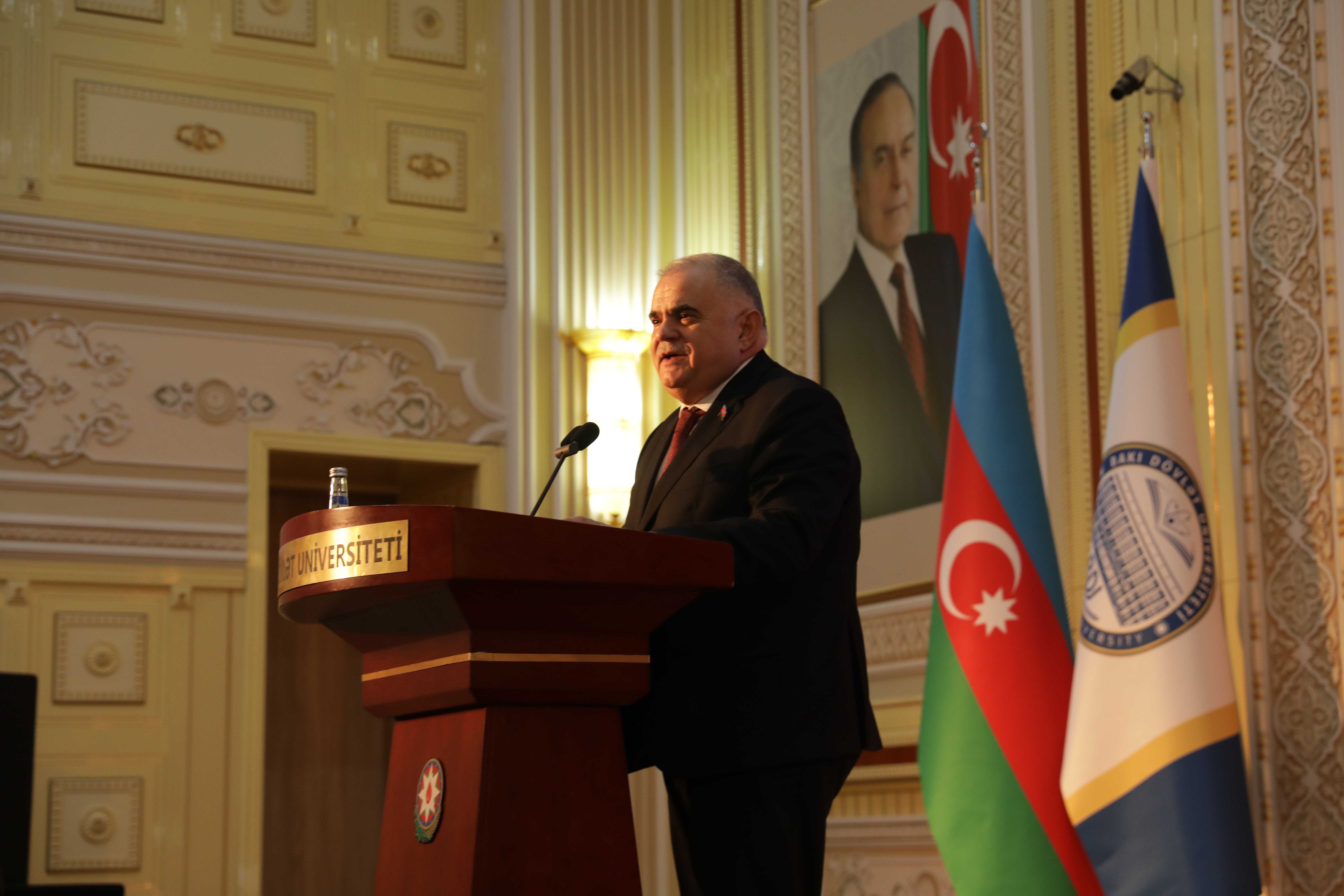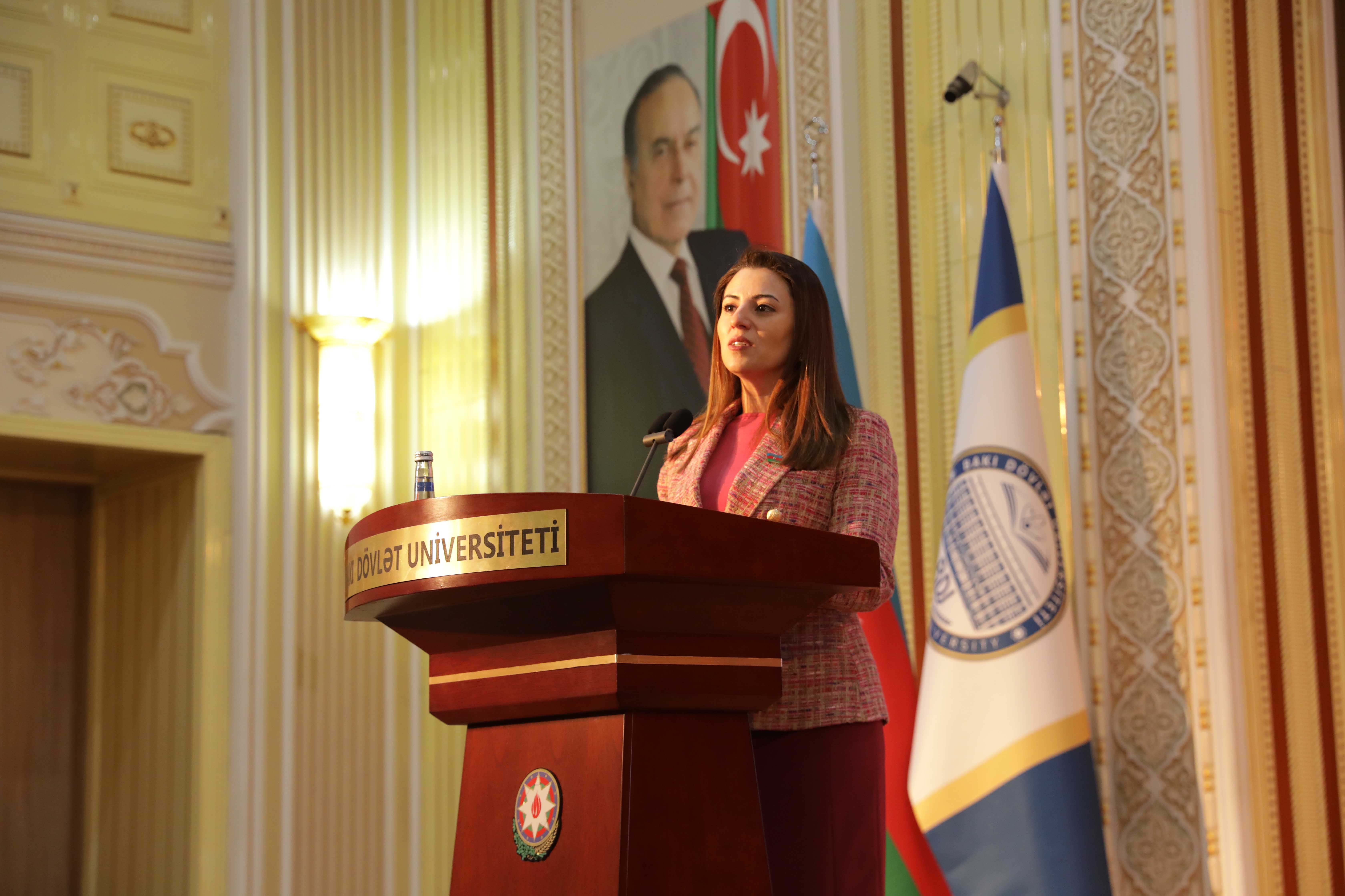 Затем на мероприятии выступили председатель Комитета по обороне, безопасности и борьбе с коррупцией Милли Меджлиса, председатель Совета общественного контроля БГУ Арзу Нагиев, член Милли Меджлиса Севиндж Фаталиева и заведующая кафедрой БГУ, профессор Метанет Абдуллаева.