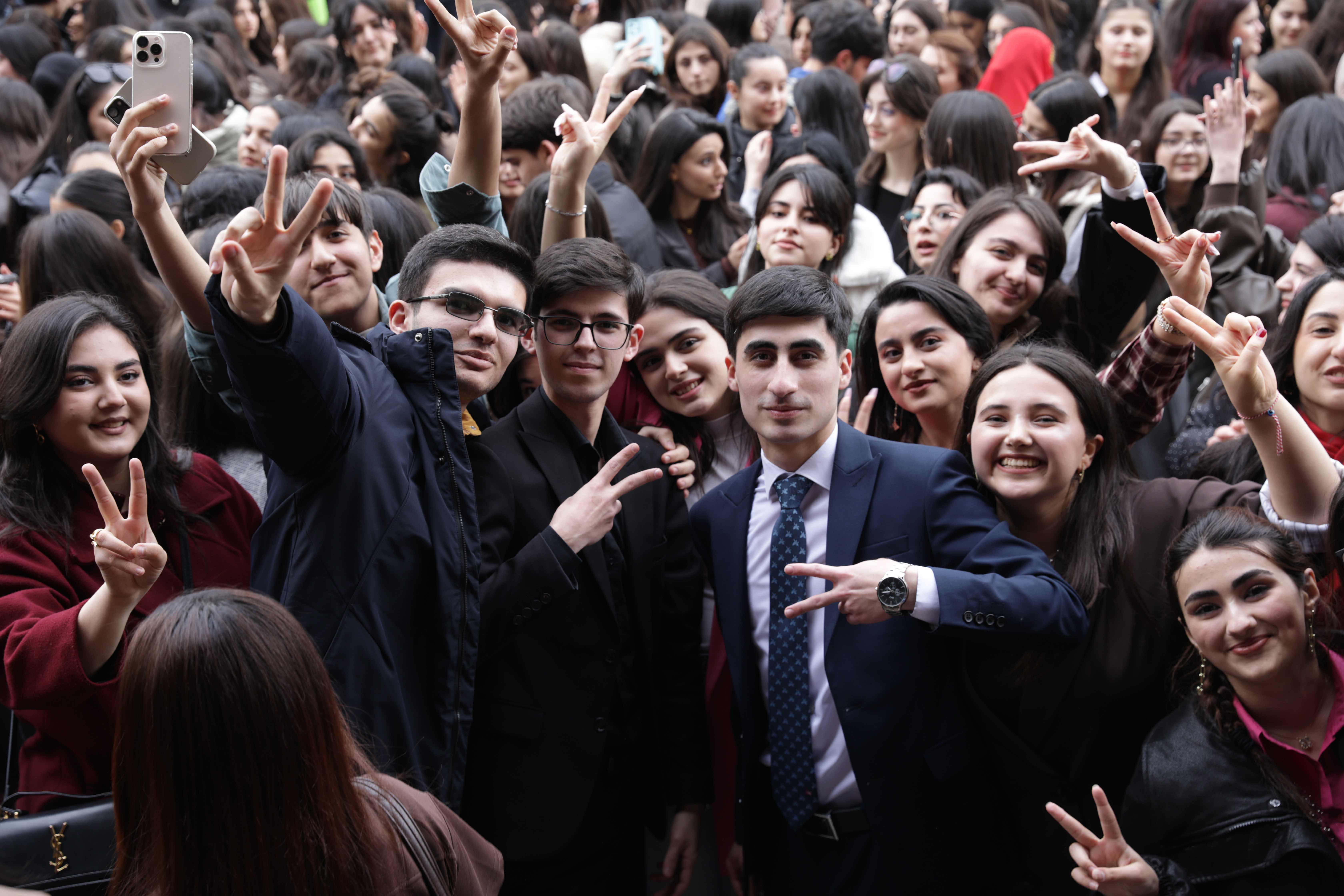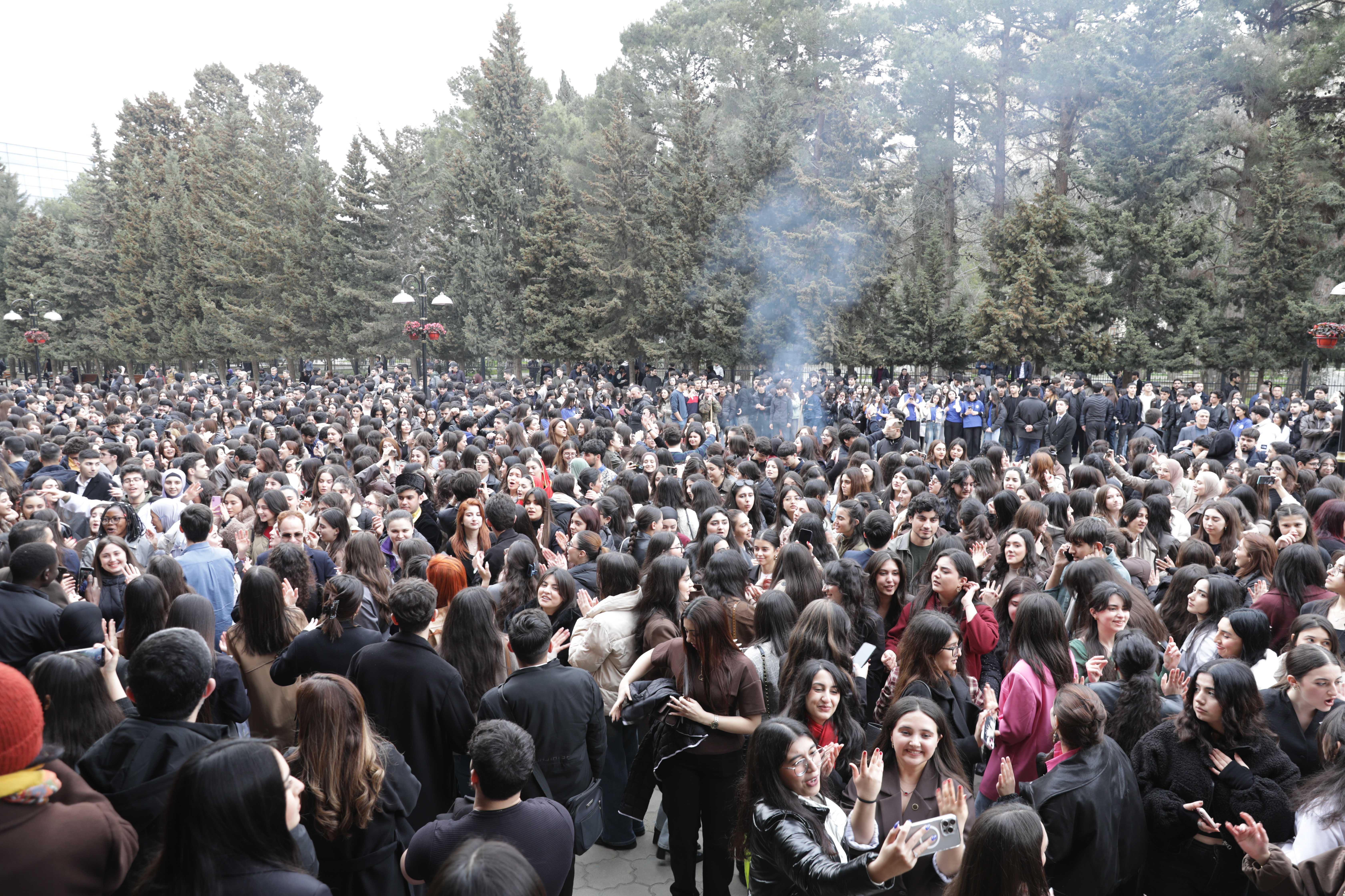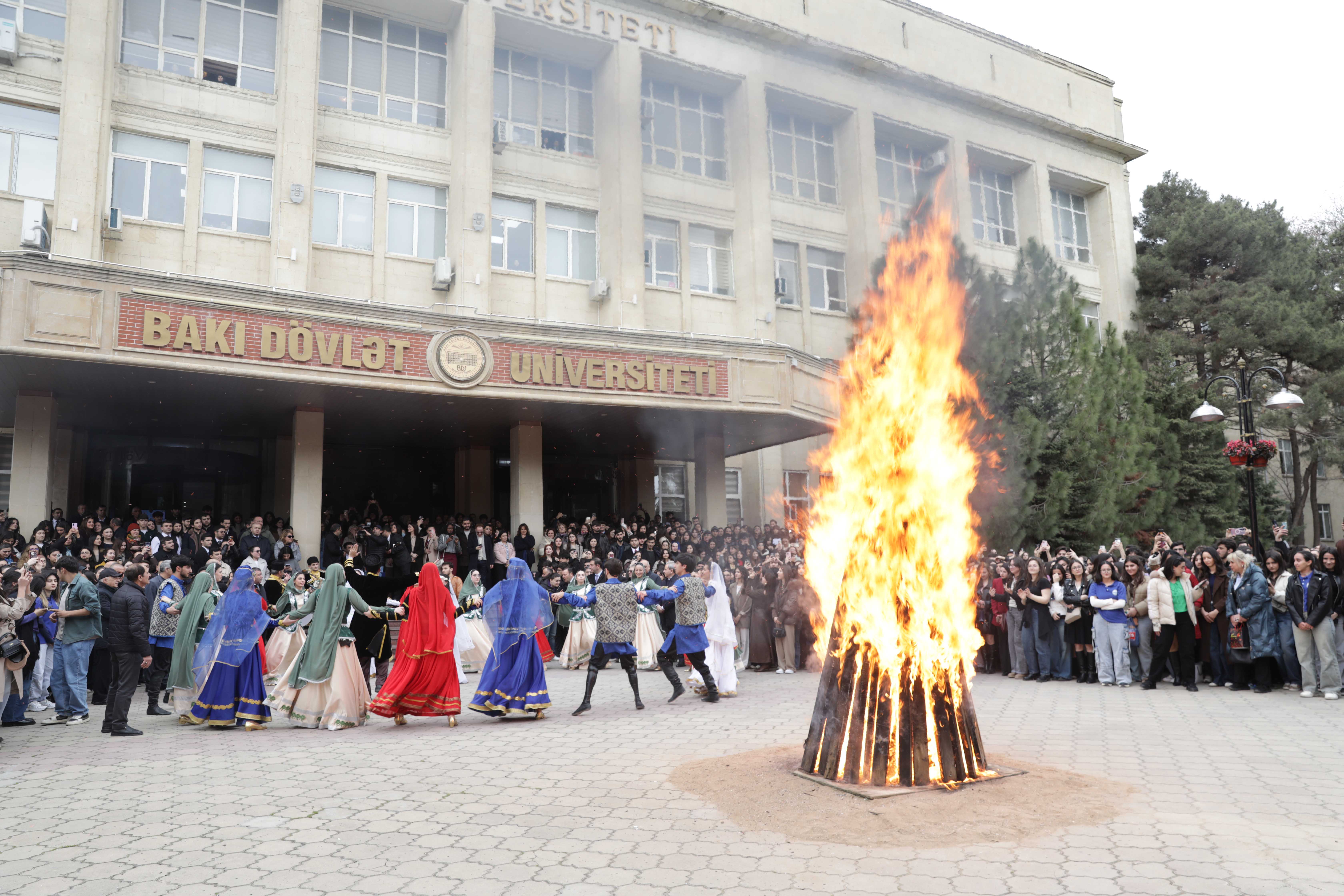 Ректор БГУ Эльчин Бабаев и студенты в честь Новруза во дворе вуза зажгли праздничный костер.