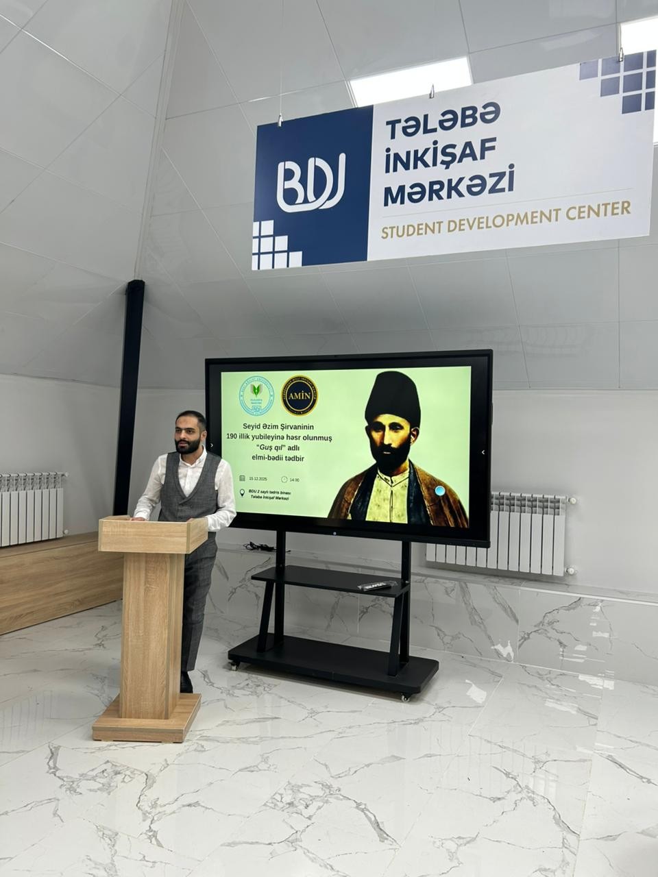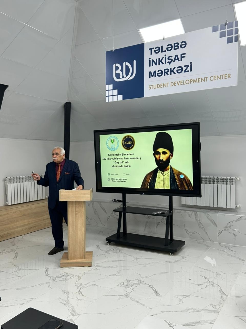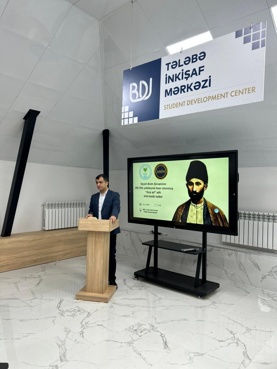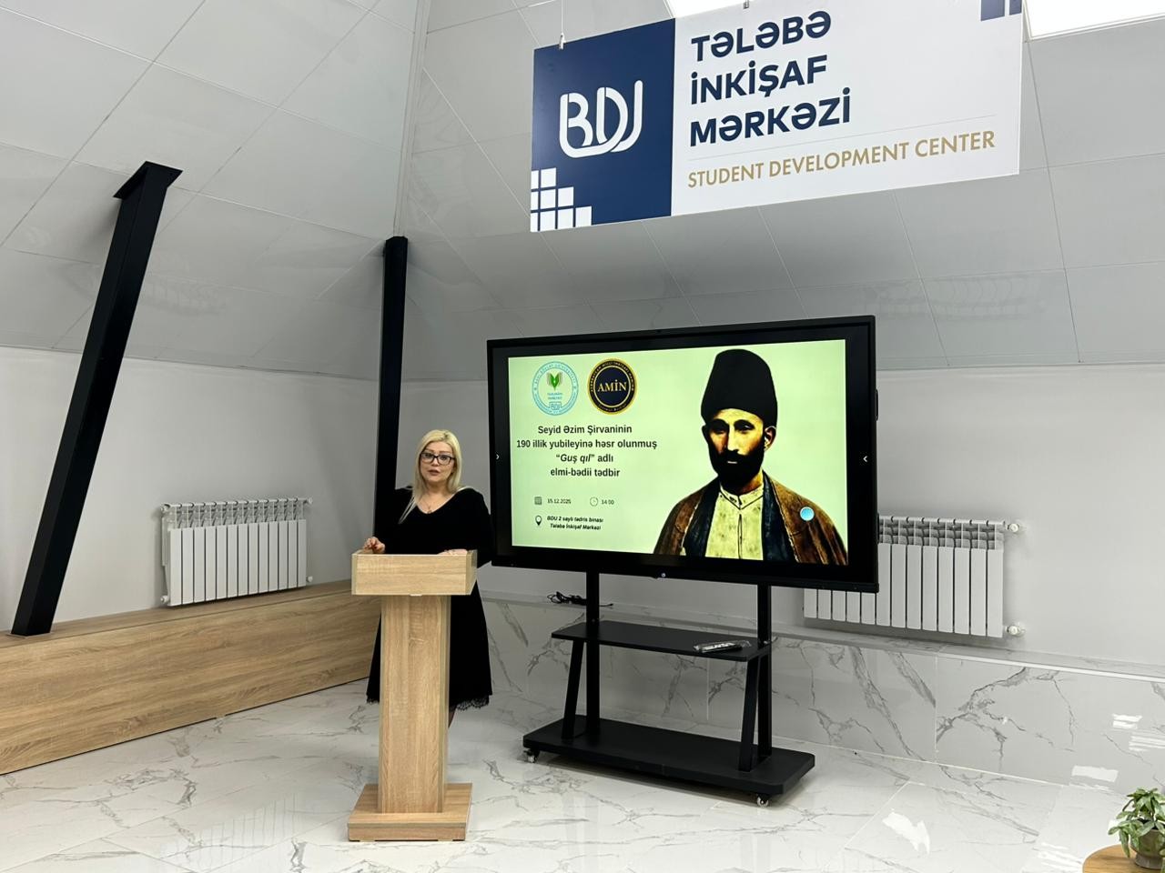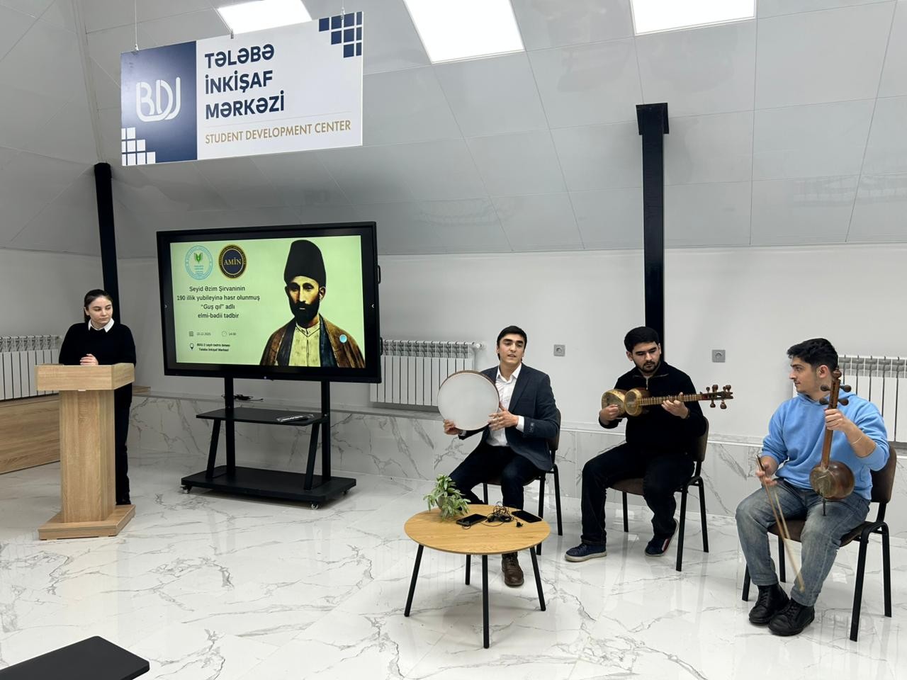 В Бакинском государственном университете (БГУ) при организации филологического факультета и Общественного объединения «Во имя национального развития Азербайджана» прошло научно-художественное мероприятие «Guş qıl», посвященное 190-летию выдающегося поэта и просветителя Сеида Азима Ширвани.