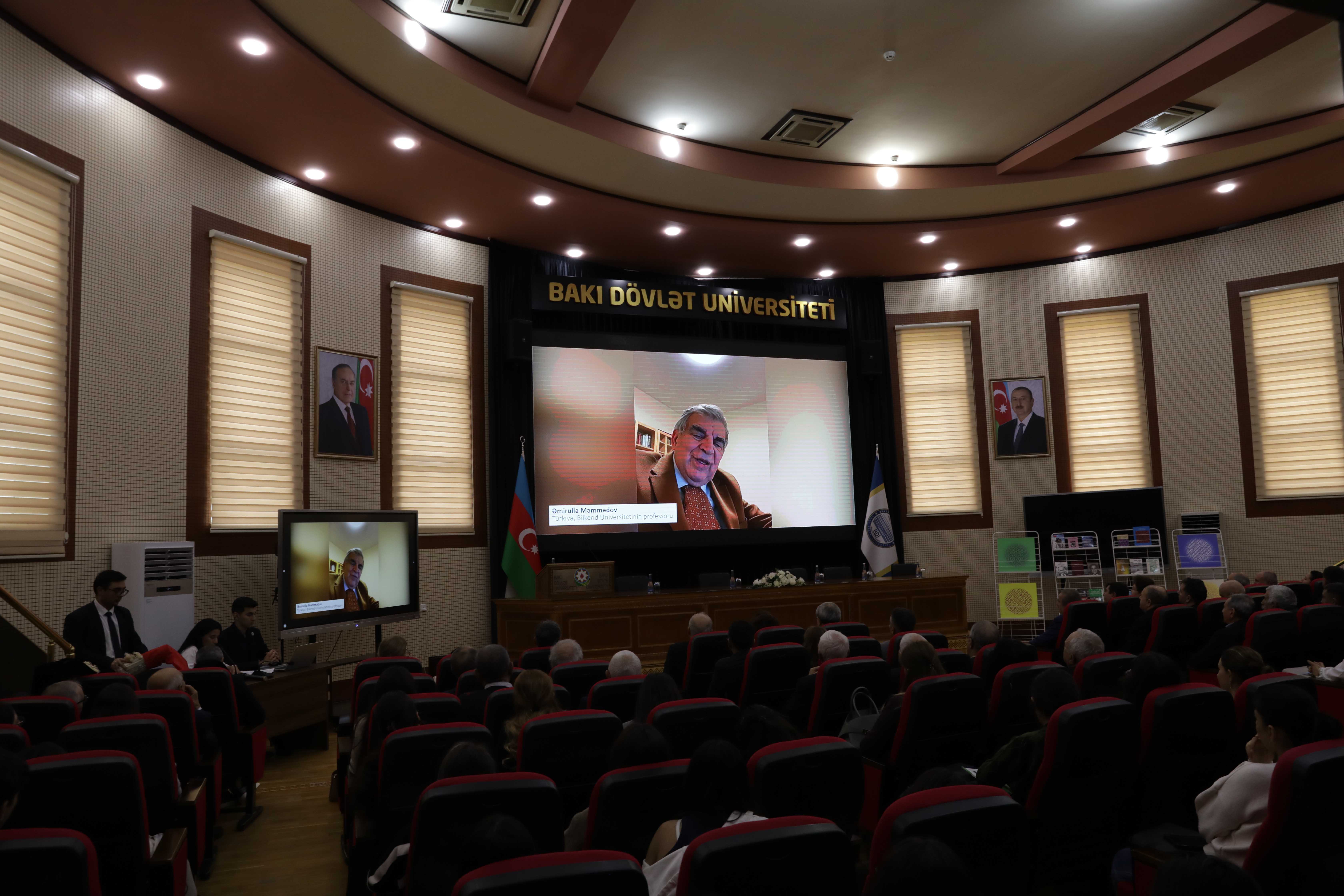 Были показаны видеопоздравления от ученых из разных стран по случаю юбилея профессора Гаджалы Наджафоглу.