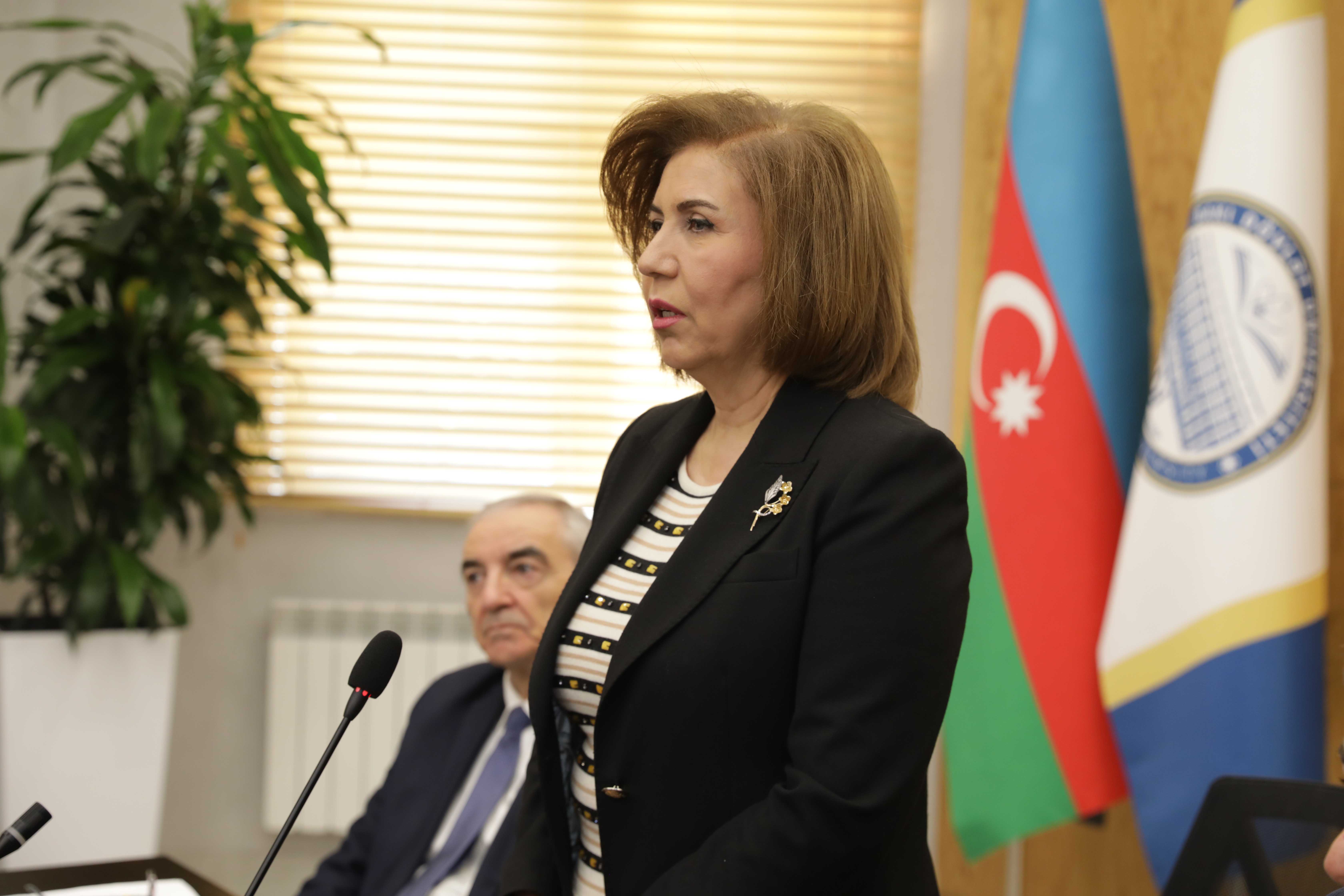 Председатель Государственного комитета по вопросам семьи, женщин и детей Бахар Мурадова, выступая с докладом, отметила, что каждый народ гордится своими историческими деятелями и уважает созданное ими наследие. Обогащение традиций государственности в Азербайджане, укрепление независимости страны, ее экономическое развитие и повышение ее международной репутации стали возможны именно благодаря неустанной и эффективной деятельности великого Гейдара Алиева. Народ Азербайджана с гордостью вспоминает архитектора и основателя нашего государства, великую личность, совершившую громадные дела для независимости и развития своего народа и страны и в связи с этим оказавшую влияние на исторические процессы.