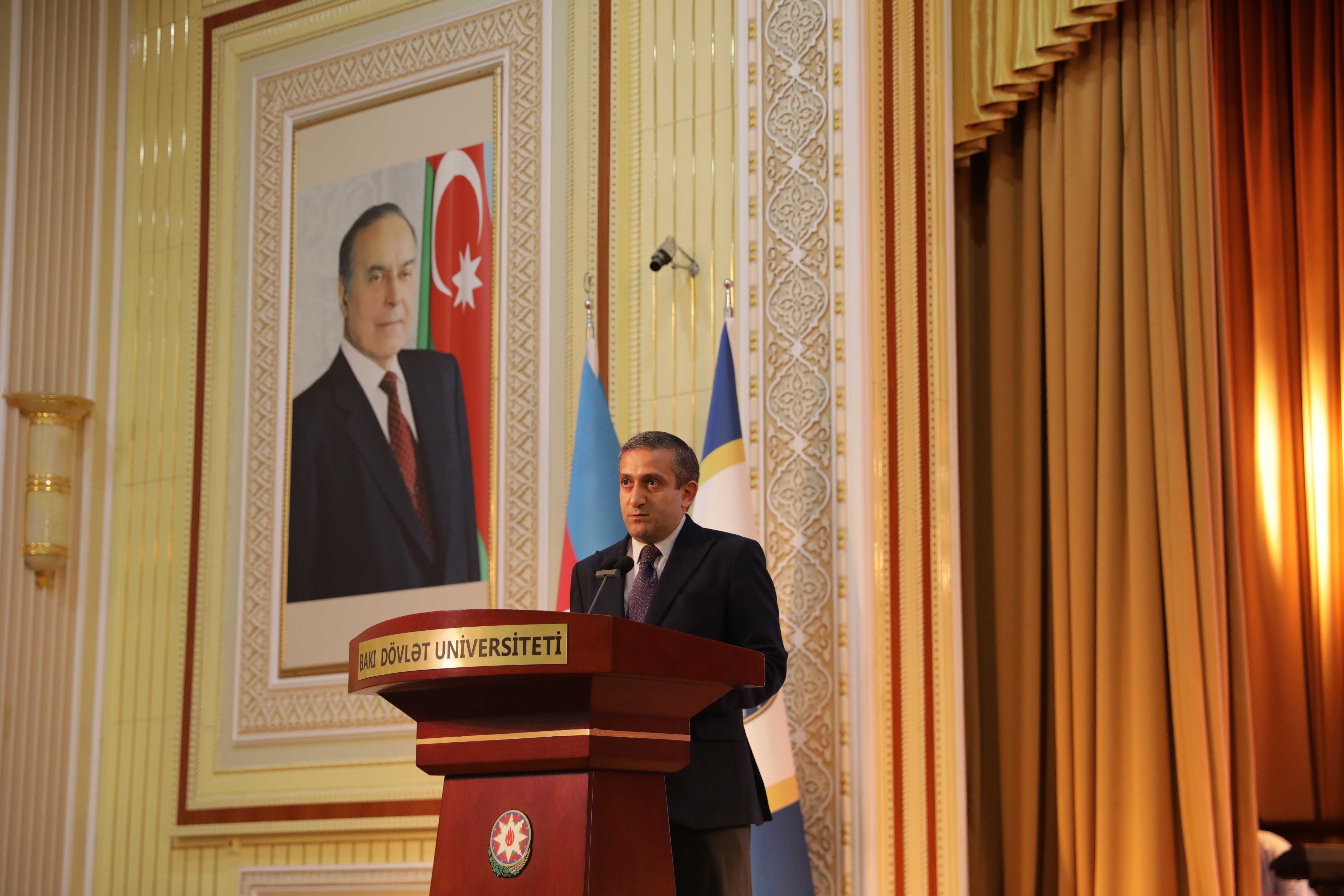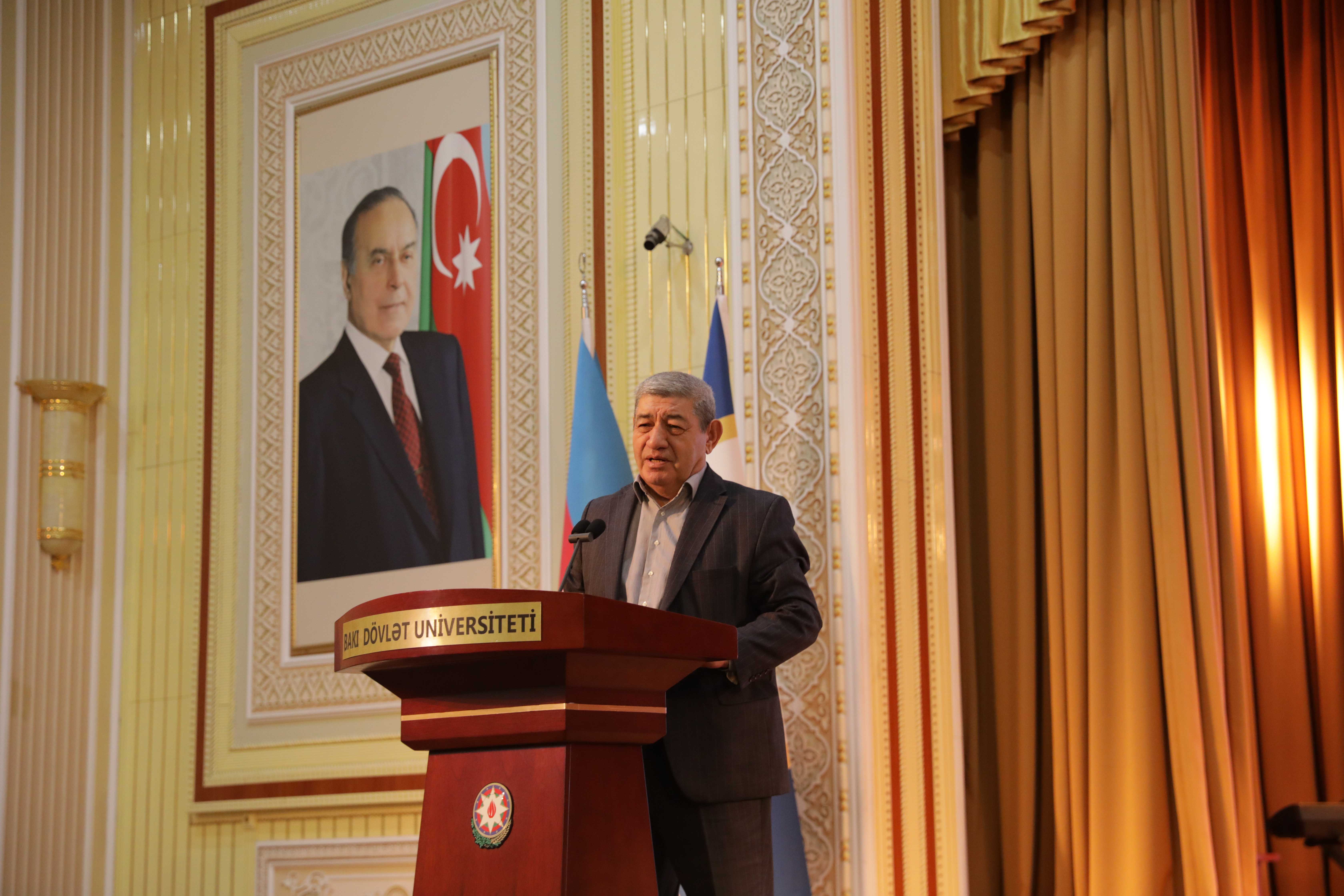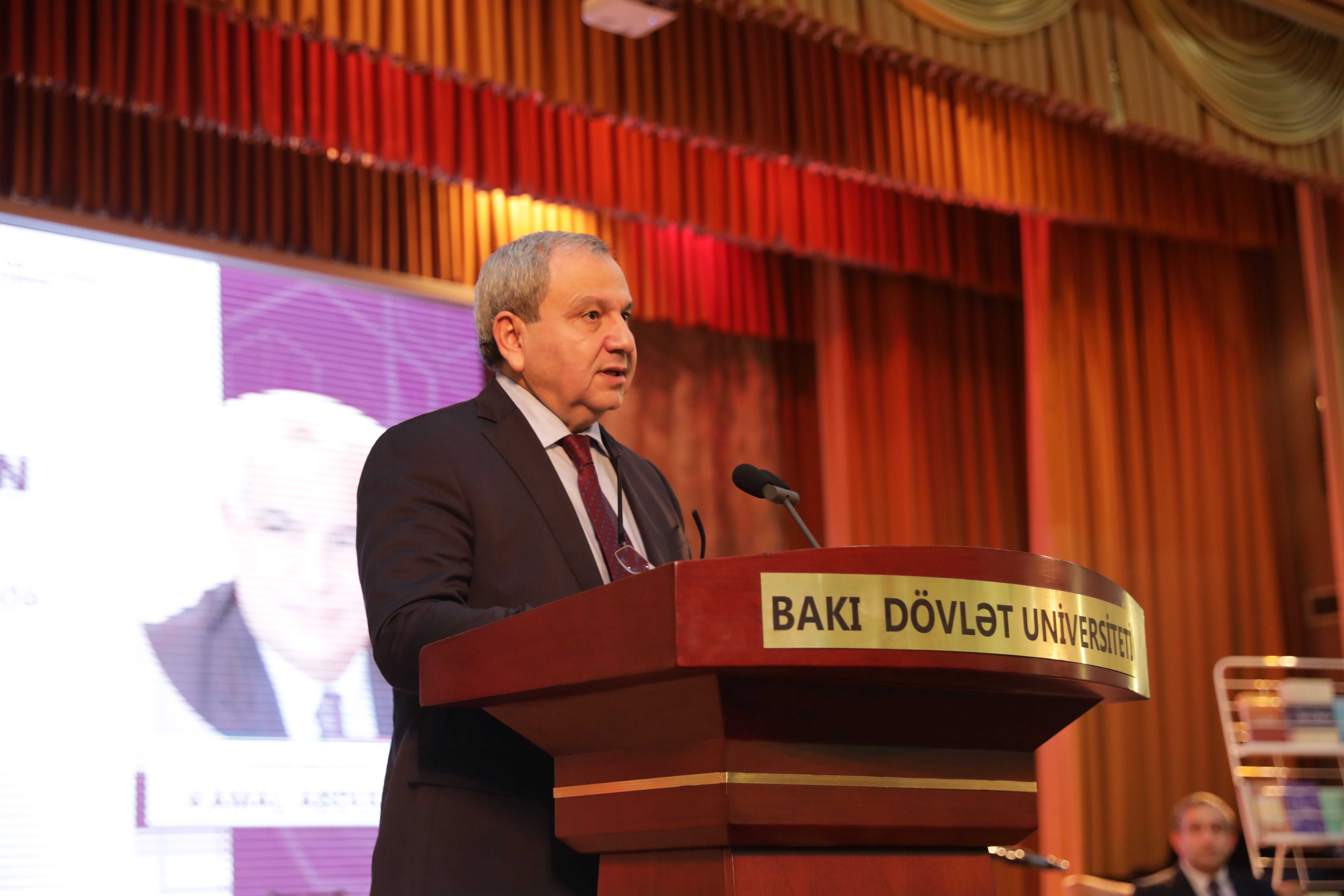 Затем слово было предоставлено народному писателю, академику Камалу Абдулле. Народный писатель, отметивший, что родной БГУ дорог ему, вспоминал студенческие годы: «Я и сегодня с большим уважением вспоминаю своих незабываемых педагогов, известных учёных, сыгравших неизгладимую роль в моей жизни. Именно в университете мы в полной мере осознали и полюбили понятие Родины. Родина – это единение людей, говорящих на одном языке и разделяющих одну идеологию. Именно этому мы научились в университете».