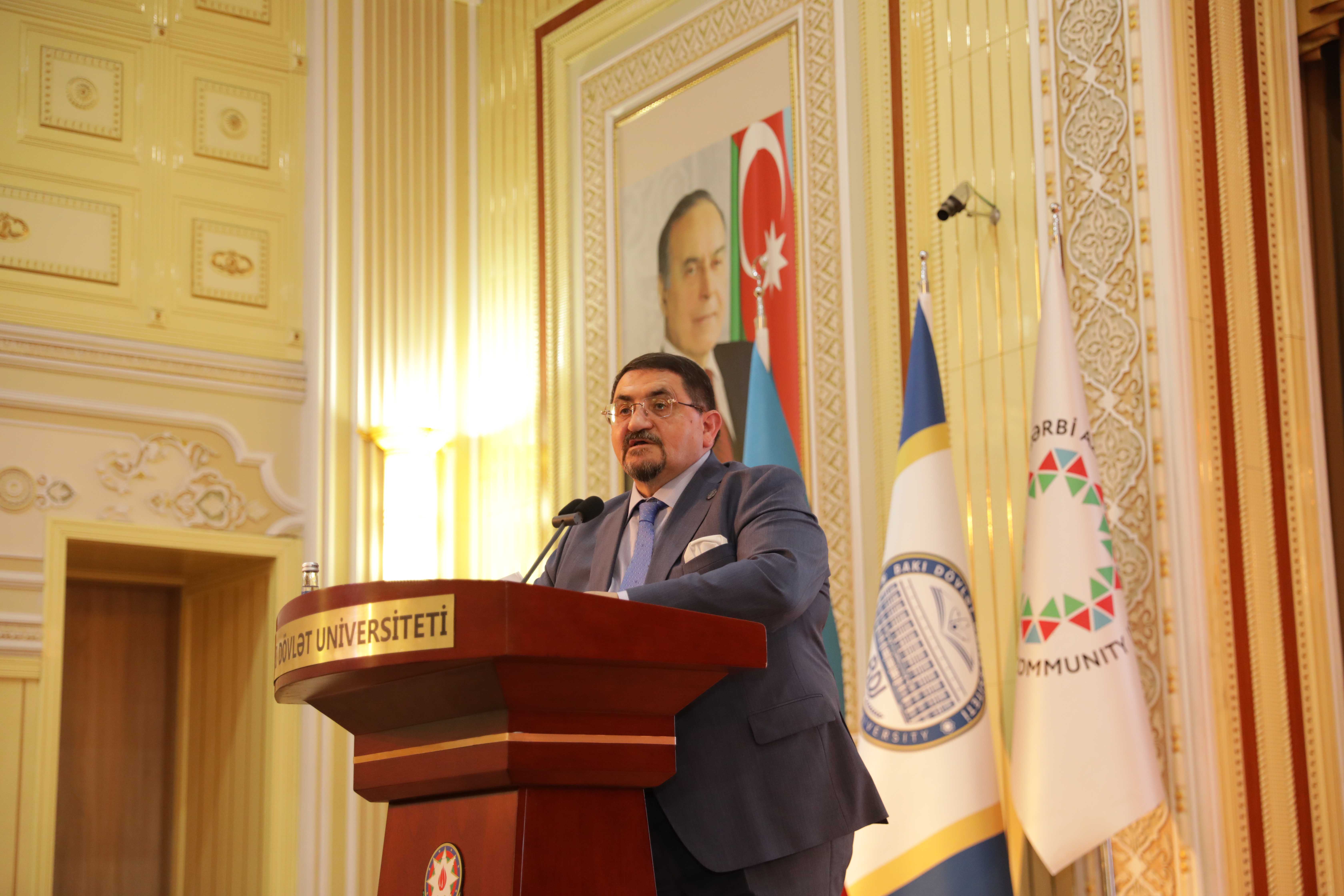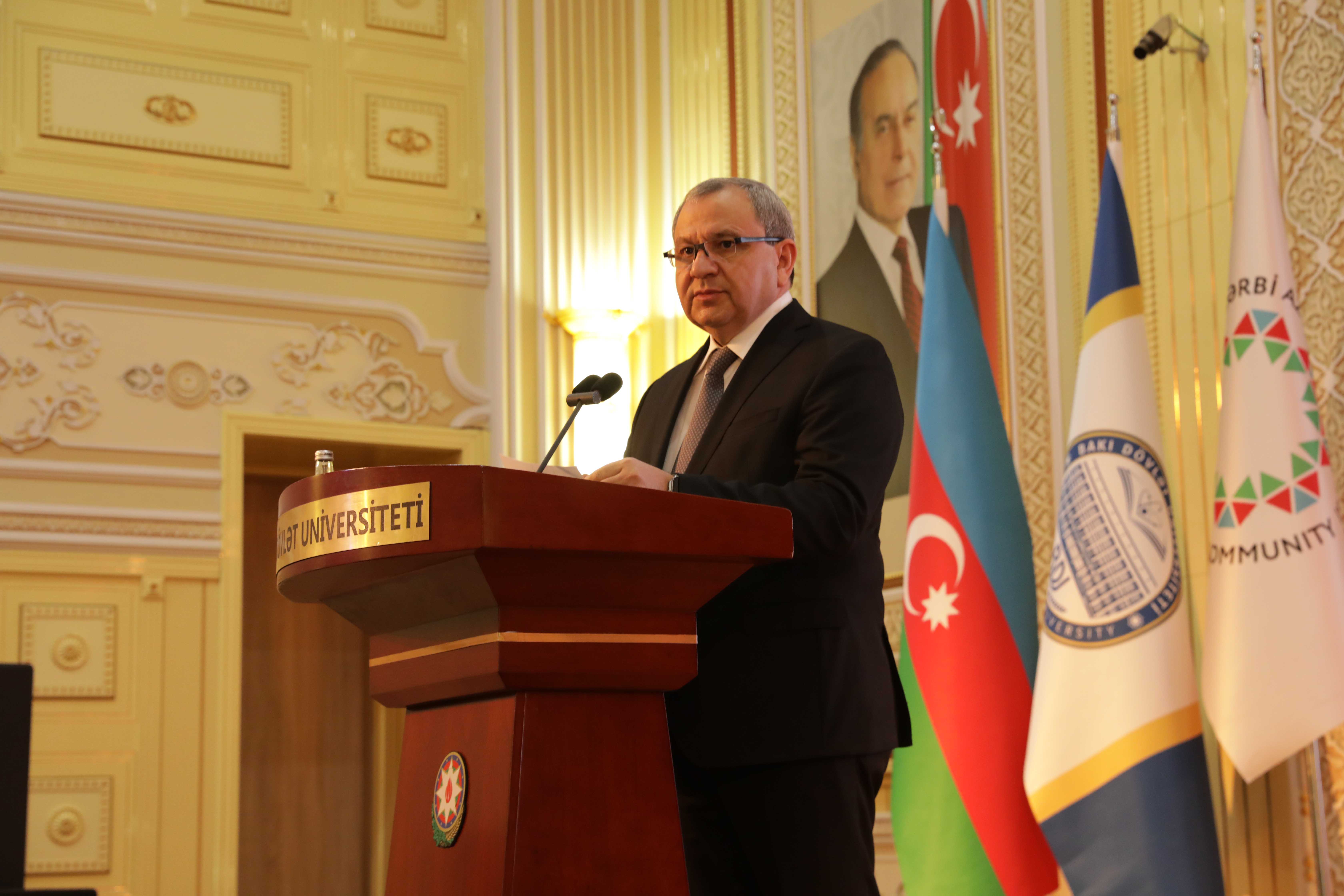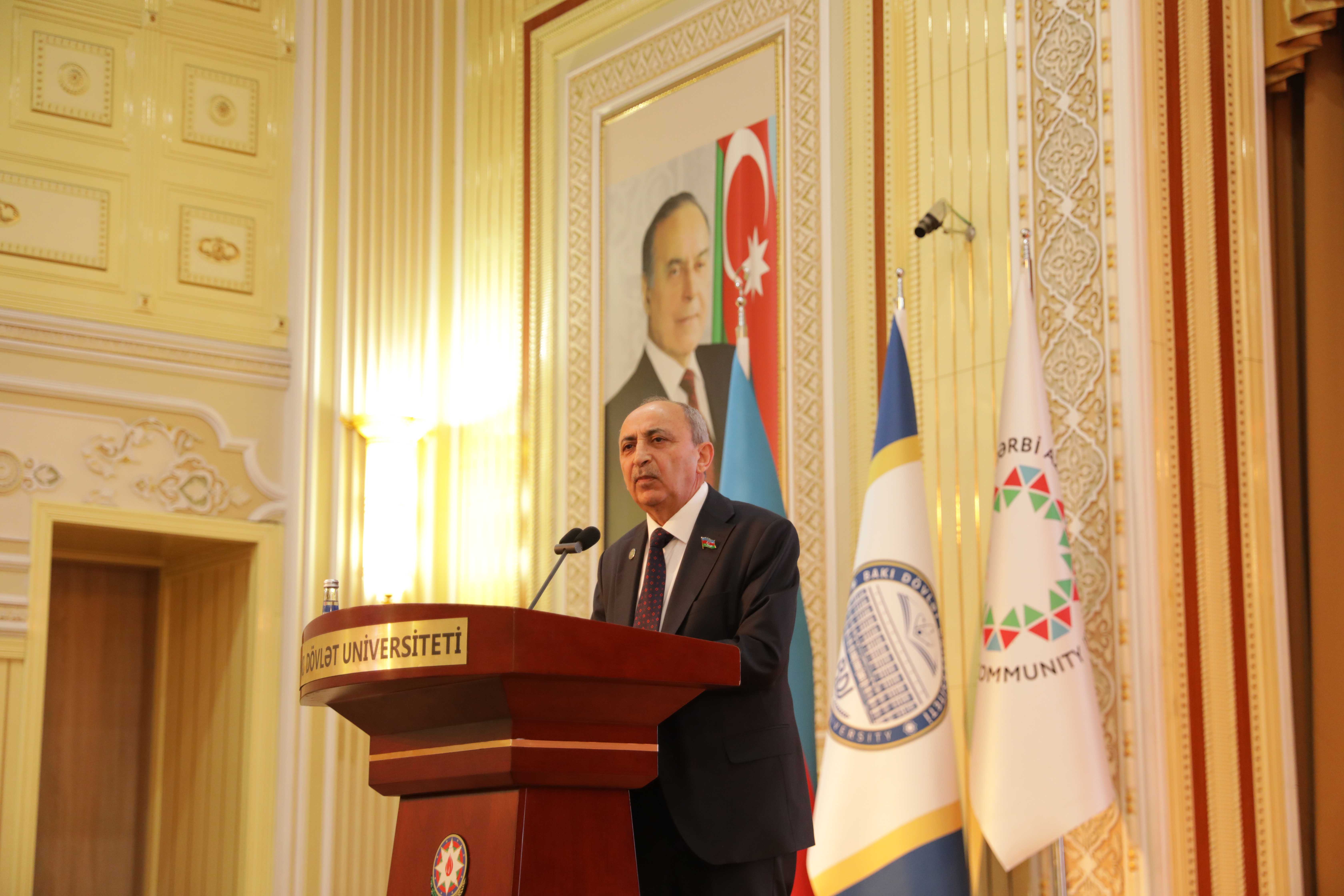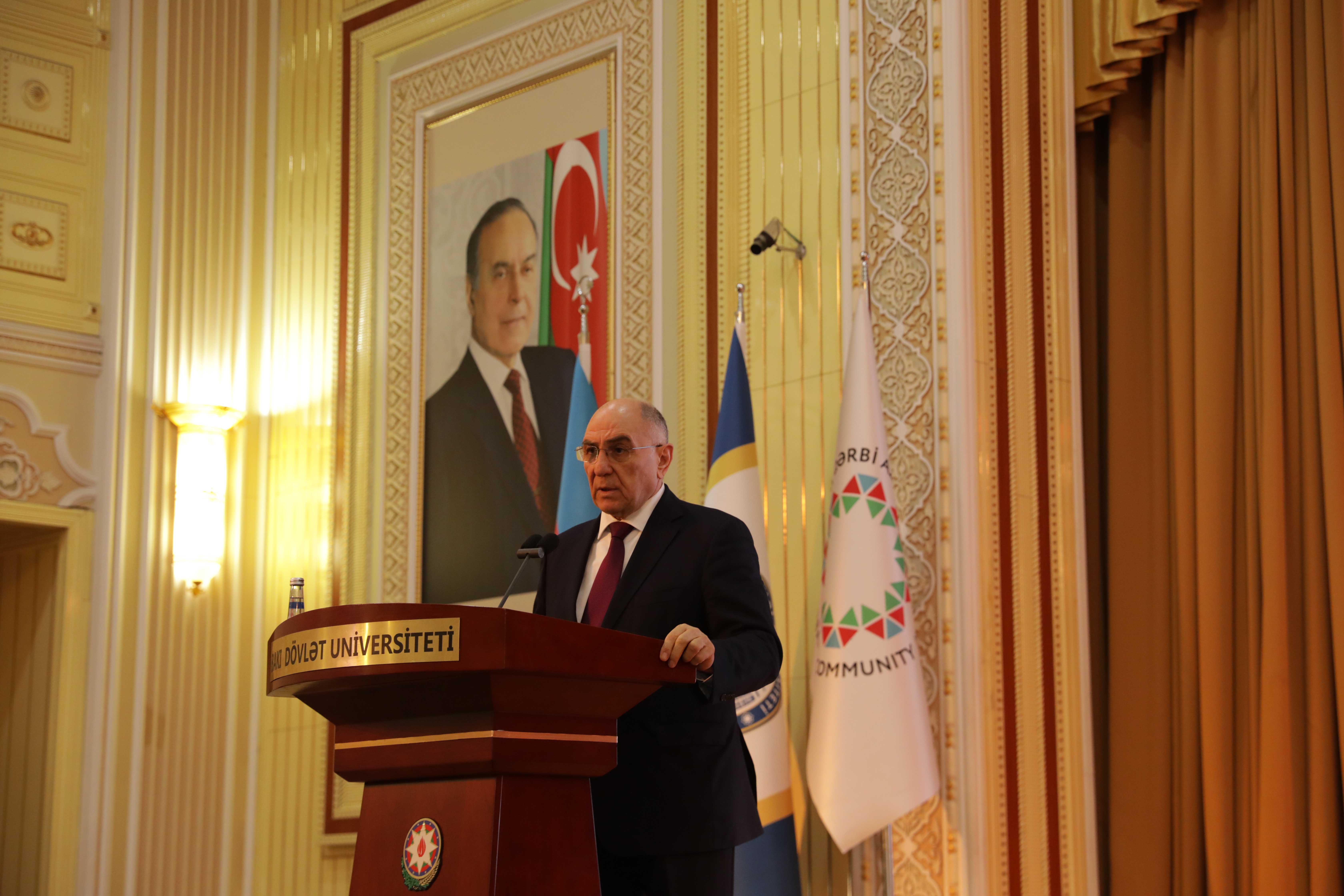 Выступая на мероприятии, ректор Эльчин Бабаев отметил, что одним из главных аспектов, характеризующих этап развития современной азербайджанской государственности, является стратегическая миротворческая политика, проводимая Президентом Ильхамом Алиевым. Идея возвращения в Западный Азербайджан также является одним из основных направлений государственной политики. Вопрос Западного Азербайджана – это тема, которую Президент Ильхам Алиев затронул и на которой изложил твердую позицию как в активной фазе армяно-азербайджанского конфликта, так и на этапе после нашей исторической Победы. Азербайджан больше не воспринимается как страна, обладающая лишь энергетическими ресурсами, а как страна, способная защищать свои национальные интересы, опираясь на международное право и стратегическое мышление: «Глава государства сформулировал вопрос о возвращении в Западный Азербайджан не как ревизионистскую, а как юридическую и гуманитарную проблему. Эта позиция основана на трех основных принципах: мирное возвращение, возвращение с достоинством в рамках международного права и прав человека, возвращение на основе исторических актов и документов. Это не только проблема исторической памяти, но и вопрос восстановления конституционных прав. Позиция Президента Ильхама Алиева связана не только с историко-фактологическими аспектами, но и с аспектами гуманитарного права».
