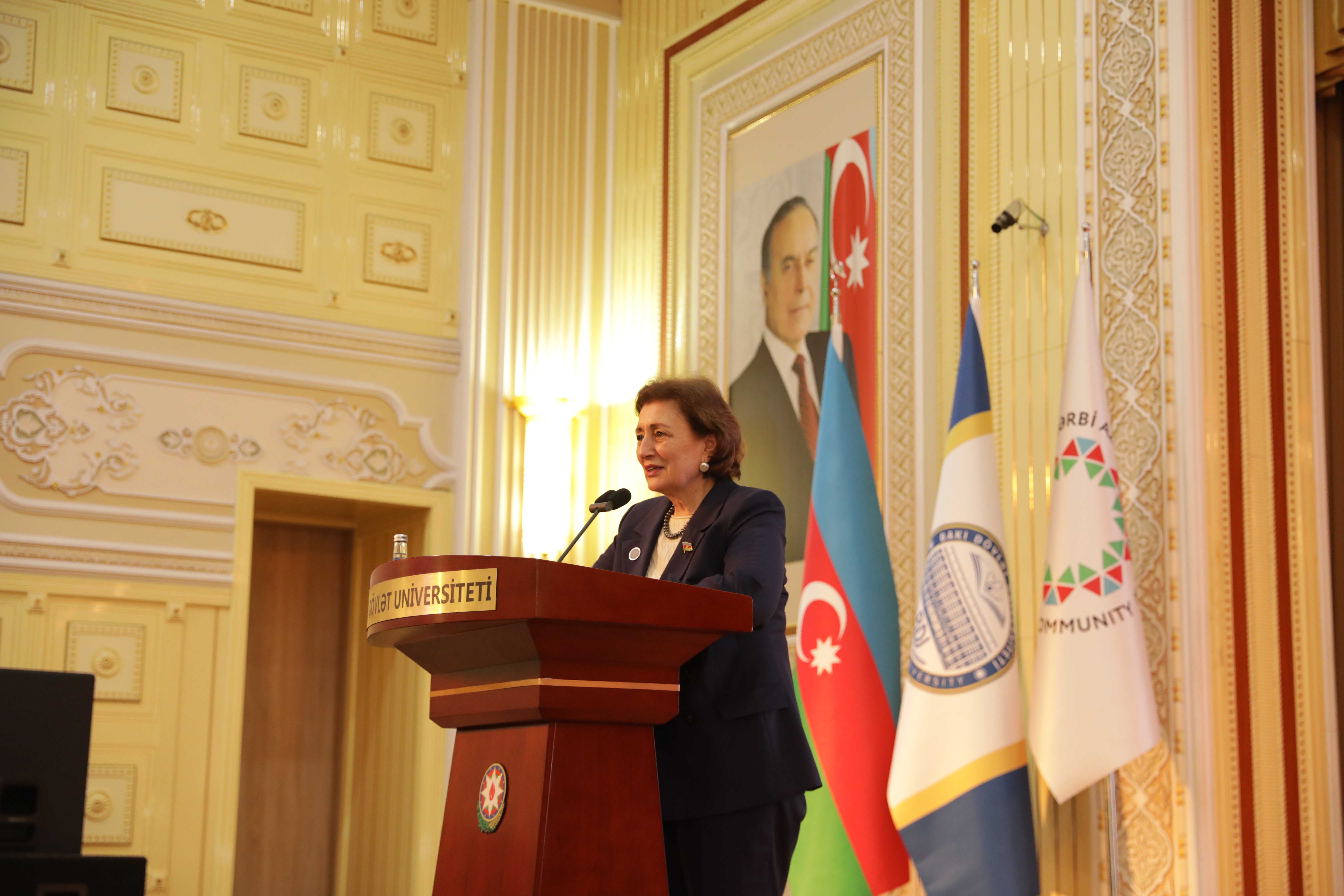 На конференции также выступили вице-президент НАНА, генеральный директор Института информационных технологий Расим Алигулиев, заведующий кафедрой общей лингвистики БГУ, заместитель председателя Совета интеллигенции ОЗА Низами Джафаров, председатель Женского совета ОЗА, депутат Мелахет Ибрагимгызы.