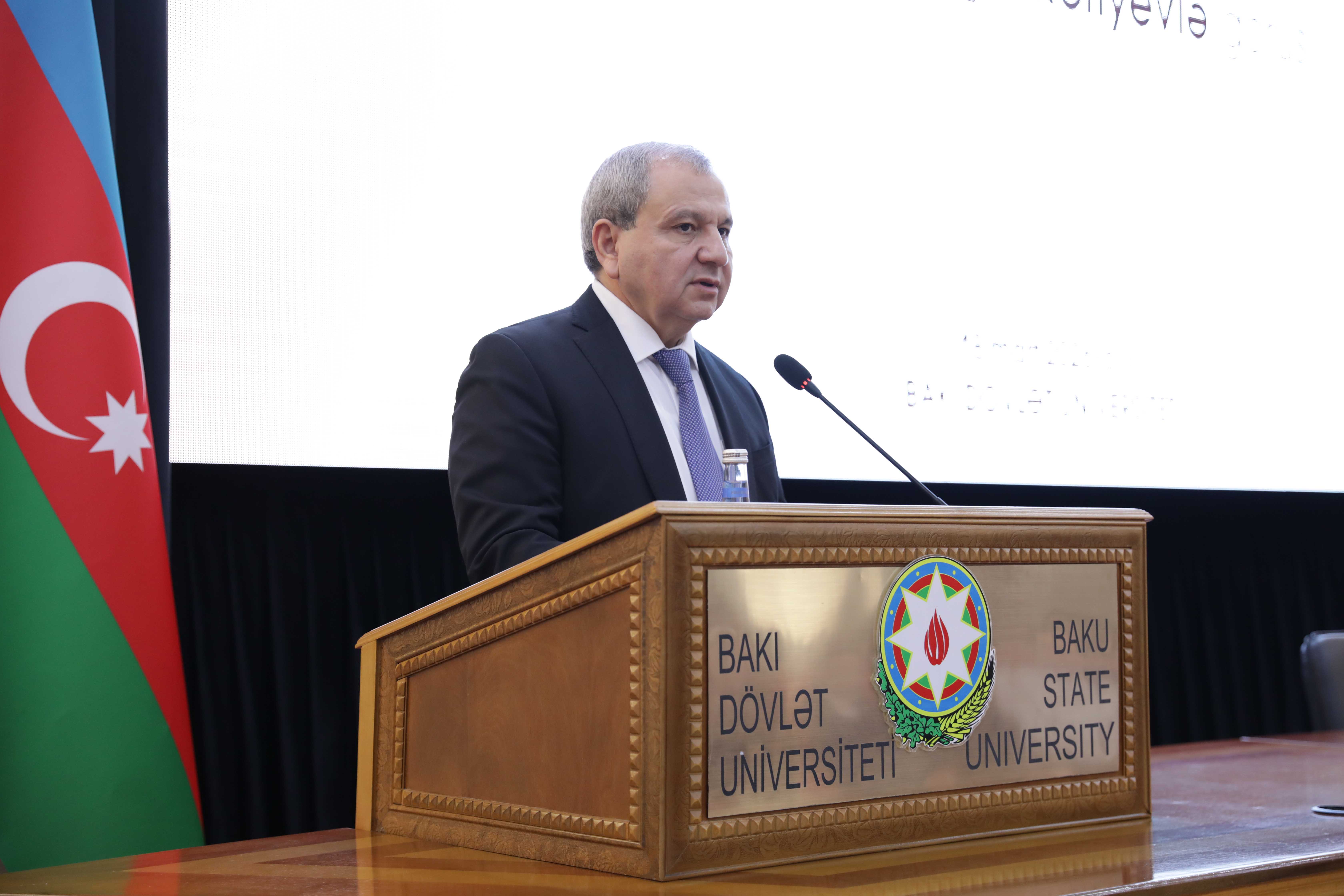 На мероприятии ректор Эльчин Бабаев подчеркнул важную роль БГУ в обеспечении страны высококвалифицированными кадрами. Он отметил, что одним из государственных учреждений, с которым БГУ тесно сотрудничает, является Министерство иностранных дел. Большинство сотрудников структур министерства - выпускники БГУ: «5 из 6 заместителей министра иностранных дел, а также большинство глав наших дипломатических представительств за рубежом - наши выпускники. Уже одни эти факты свидетельствуют о важности сегодняшней встречи и построении дипломатической карьеры».
