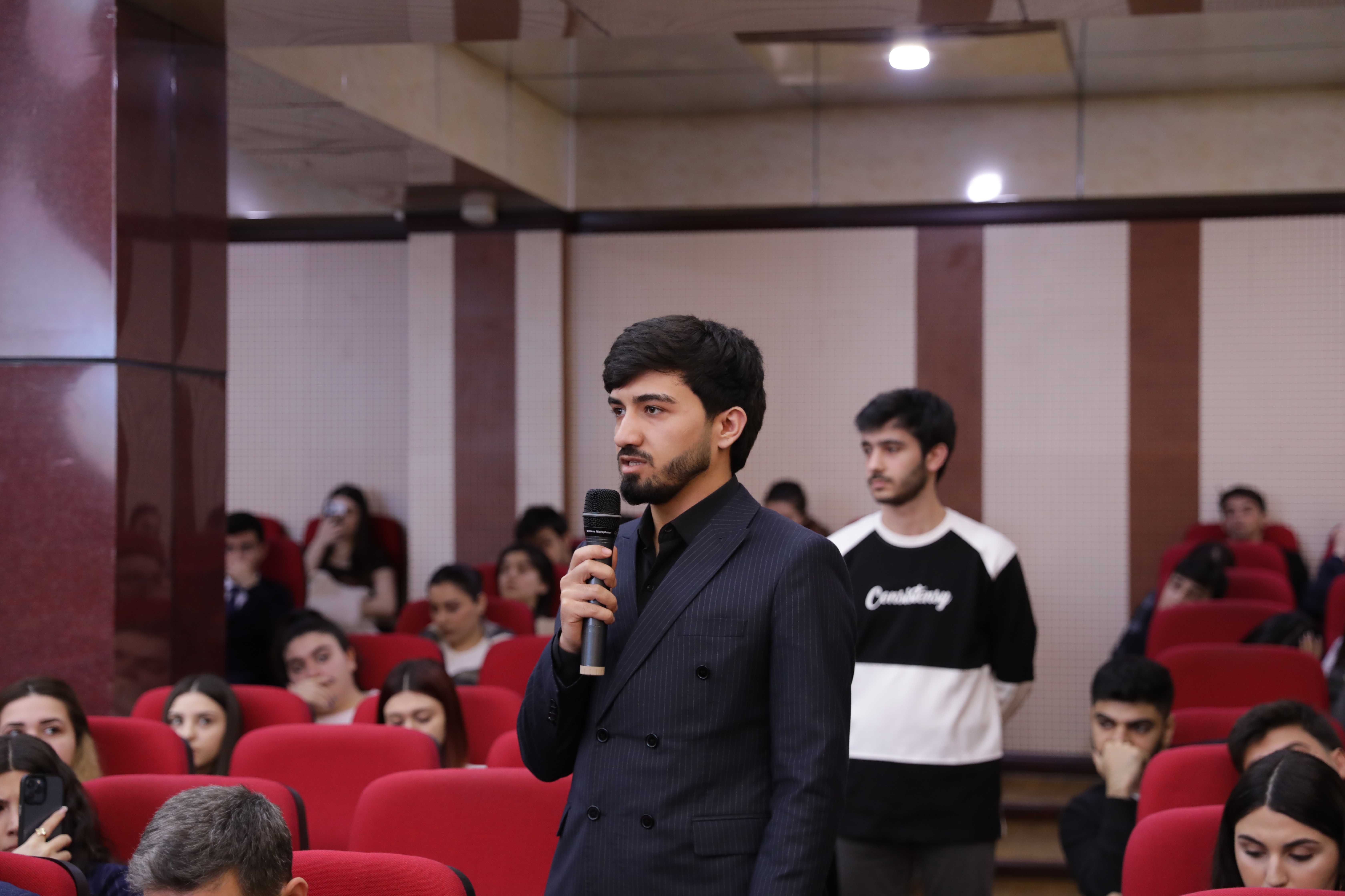 Модератор мероприятия, проректор университета Алиш Агамирзаев, отметил, что БГУ тесно сотрудничает с различными государственными и частными учреждениями страны и что подобные встречи имеют большое значение для построения карьеры студентов.