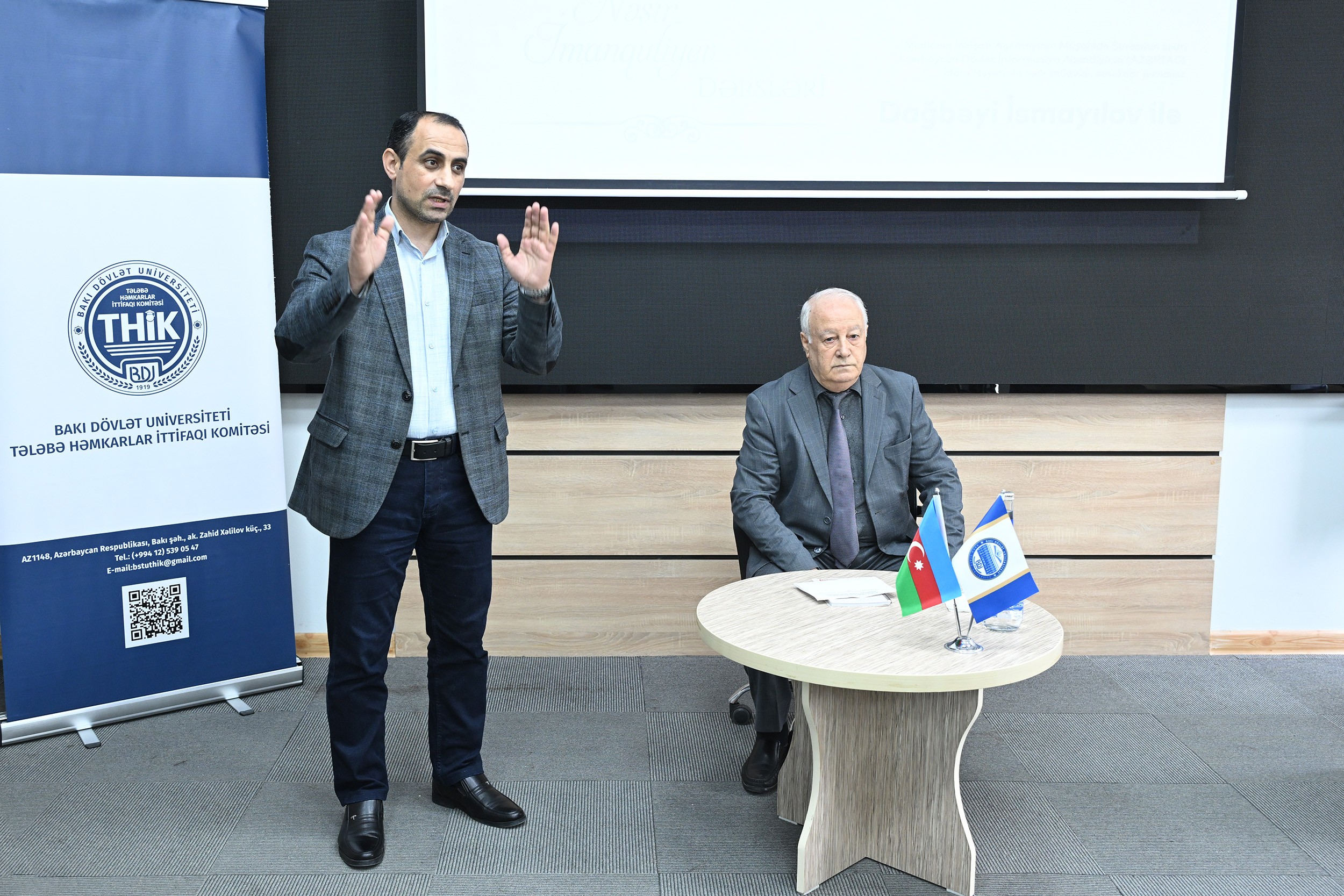 По инициативе членов Студенческого профсоюзного комитета Бакинского государственного университета (БГУ) по факультету журналистики состоялась очередная встреча в рамках проекта «Уроки профессора Насира Имангулиева», посвященного 115-летнему юбилею выдающегося журналиста, общественного деятеля, профессора Насира Имангулиева.