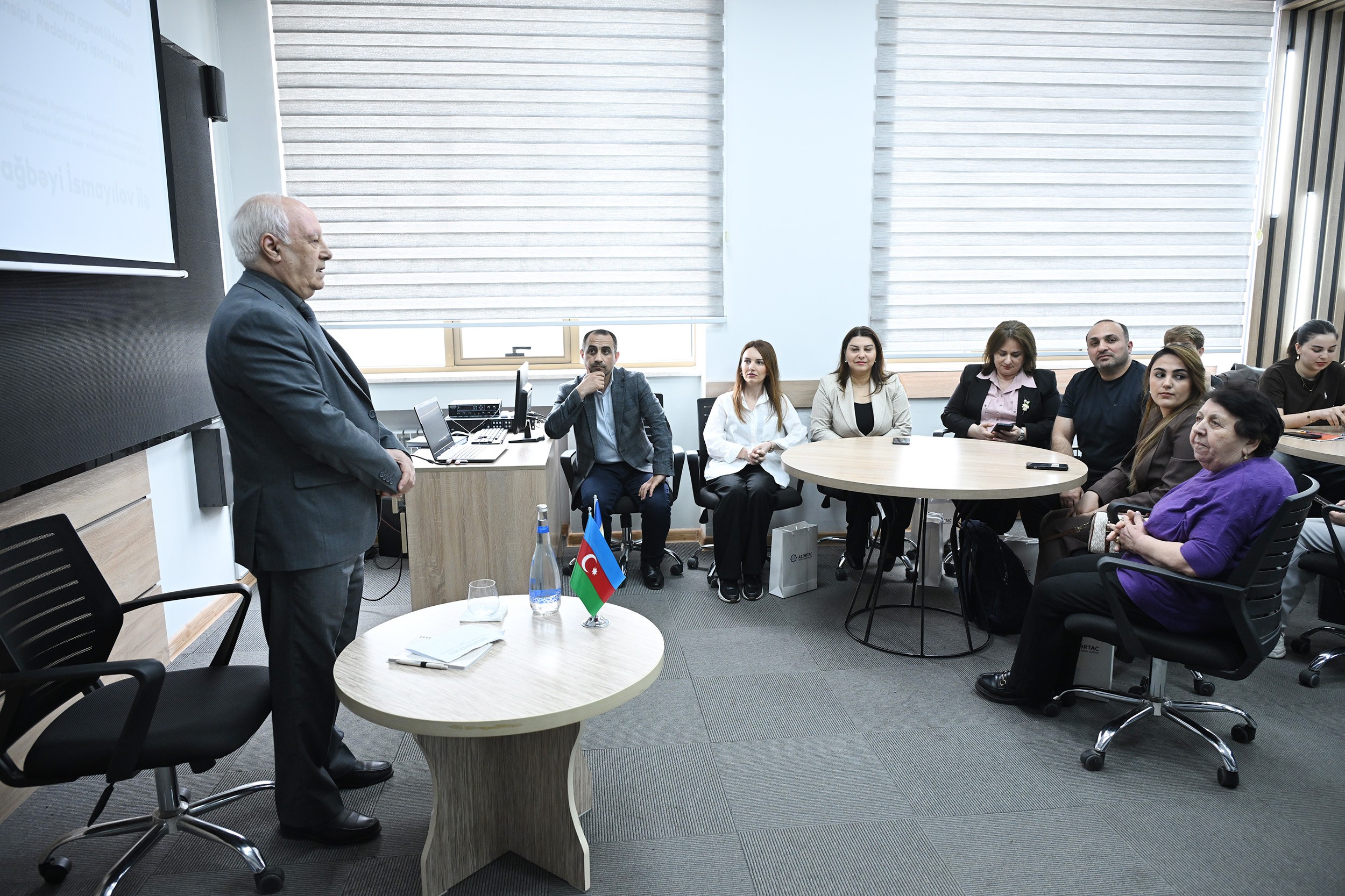 Гостем второго занятия проекта стал председатель Наблюдательного совета Агентства развития медиа, заместитель председателя Правления Азербайджанского государственного информационного агентства (АЗЕРТАДЖ), заслуженный журналист Дагбеи Исмаилов. Выступив с обширной презентацией на тему «Принцип работы информационных агентств. Организация редакционной работы», он поделился практическими знаниями и опытом по управлению информационными потоками в современной медиасреде, соблюдению баланса между оперативностью и точностью, а также эффективному выстраиванию редакционных процессов.